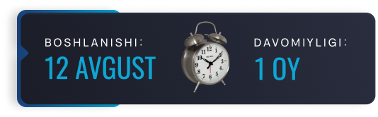 Kafolat (natija bo’lmasa 100% puli qaytarib beriladi)